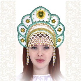 Кокошник Хозяюшка - лаконичный по форме, красивый по сочетанию цветов, изысканный по материалам, благородный по образу.