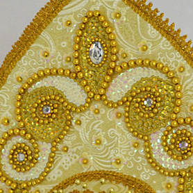 Дополняет кокошник красивая поднизь из бусин и длинные подвески.