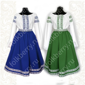 Рубаха для мужчин и детей модели «Николай» предназначается для традиционных русских праздников и мероприятий. Наряд сшит из габардина, белоснежного цвета. Орнамент «хохлома» на вороте, груди, манжетах и по низу сделан несмываемой краской – желто-зеленого цвета и по его контуру струится изящная тесьма золотистого цвета. Краска не смывается при стирке, не линяет, поэтому орнамент остается стойким на протяжении всего срока эксплуатации. К рубахе прилагается пояс с рисунком на концах.