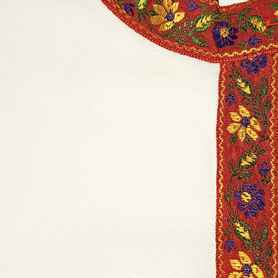 Костюм "Пасхальный" (рубаха и порты). Рубаха с кушаком и порты выполнены из льняной ткани, декорированы льном доп. цвета, украшены машинной вышивкой.