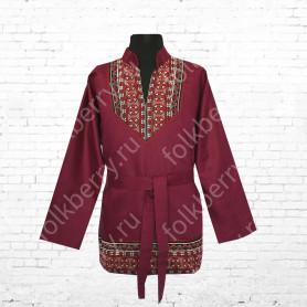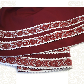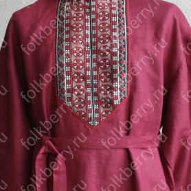 Платье «Полюшко» изготовлено из белого льна. Декорировано жаккардовой тесьмой с цветочными узорами в русском стиле. Декор собирается профессиональным дизайнером из жаккардовой тесьмы, вьюнка, бархотки с учетом цвета и рисунка текстильных материалов.  Платье хорошо сядет на разные типы женской фигуры. Свободного А-силуэт, рукав реглан, регулируемая горловина способствуют удачной посадке. Талию удачно подчеркивает широкий декорированный пояс. Его также можно использовать с другими вещами ( например, белой блузой).
