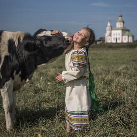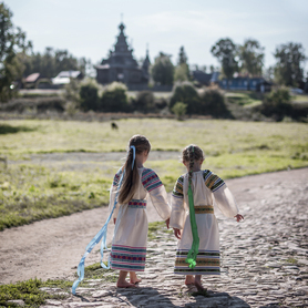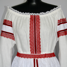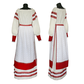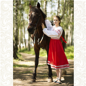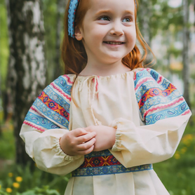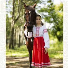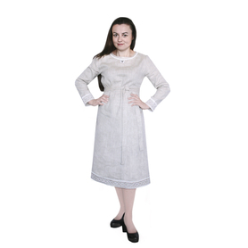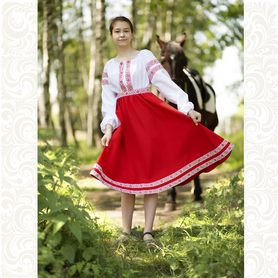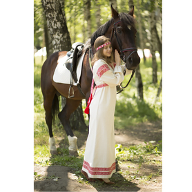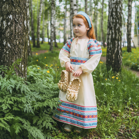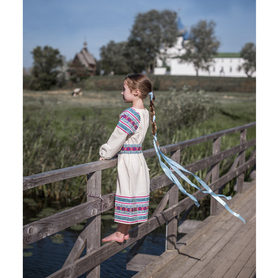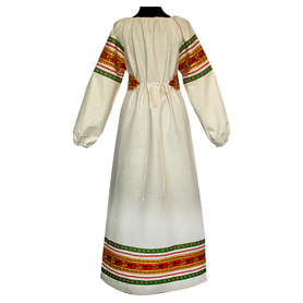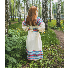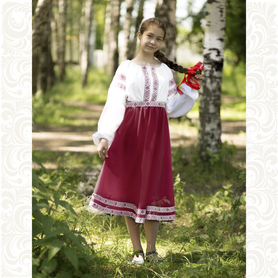 Платье Полюшко из белого льна - отличный выбор для сольных и групповых выступлений, семейных и православных праздников. Платье будет хорошим подарком и обрадует и дочку, и маму, и бабушку одновременно.  В нашем магазине к платью Полюшко можно выбрать кокошник или очелье.