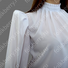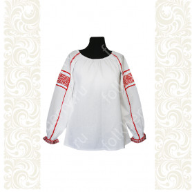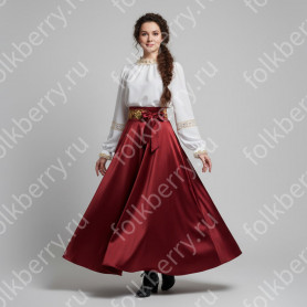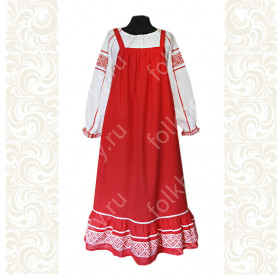 Выполненный в православном стиле сарафан с блузой «Русь» сшит из натурального хлопка в цветочек. Модель скромно декорирована однотонным воланом в цвет с основной тканью и тесьмой вьюнок. Можно носить под пояс и регулировать бретели по длине. Белая блузка из хлопка с длинным рукавом расшита натуральным нежным кружевом.