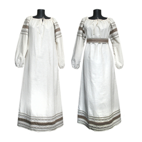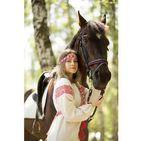 В комплект входит очелье  пояс с кисточками, выполненные в технике ткачества.