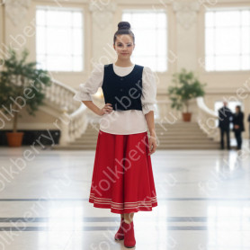 Сарафан с блузой «Марья да Иван» выполнен в красном цвете в традиционном русском стиле. Плотный матовый габардин не мнется, не блестит под софитами.