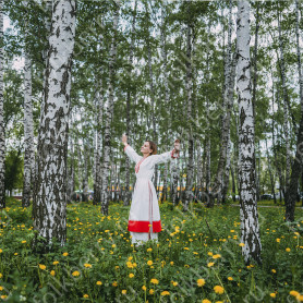 Сарафан с блузой "Солнышко мое" смотрится очень ярко, празднично и подойдет для активных народных танцев.