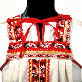 Материалы: габардин, хлопок, жаккардовая тесьма, вьюнчик.