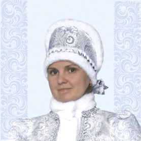 3. Кокошник выполнен из парчи, кружева, страз. К кокошнику прилагаются полупрозрачная фата и длинные бусы-подвески. Высота кокошника 13 см. Сзади ленты-крылья. Кокошник легкий и удобный.